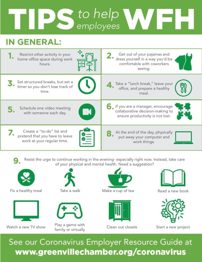6. If you are a manager, increase your group meeting frequency – although not necessarily meeting length.  Consider having a short group meeting each day to talk about to-do lists and projects – and just let everyone know that you are all still a team.  Encourage people to call, text, email and video chat when making decisions.  Collaborative decision making is proven to result in better decisions most of the time – and it is one of the things that is quickly lost when people cannot just “stop by” a colleague’s office.